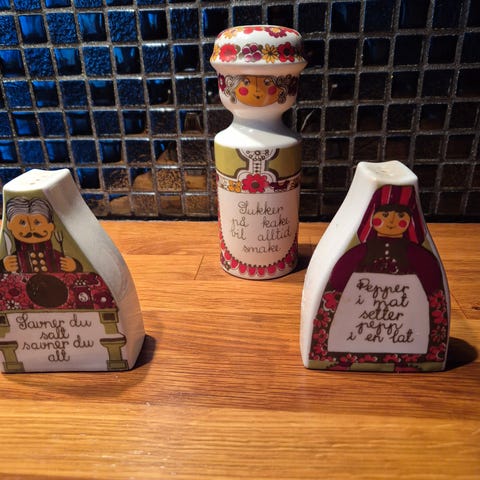 Figgjo Folklore. Sukkerstrøet, salt og pepper bøsser.