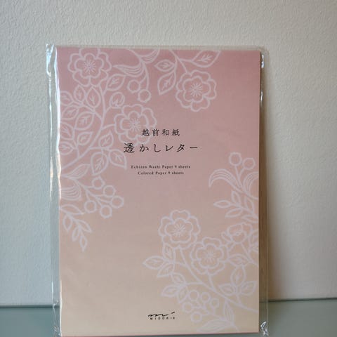 Sett med 2 japanske brevpapir og 2 konvolutter i lyse pastellfarger. Egnet til håndskrevne brev, hilsener eller annen personlig korrespondanse.