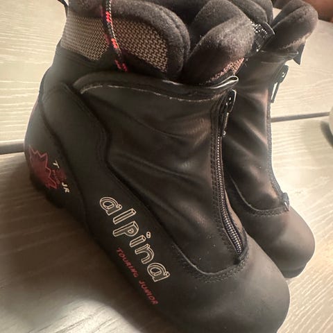 Alpina Touring langrennsstøvler i svart og grått. Støvlene har overtrekk med glidelås foran for å beskytte mot snø og fukt. Sålen er tilpasset klassisk langrenn med turfokus. Overdelen er i syntetisk materiale med tekstilfôr for komfort og varme. Kun brukt på 3-4 korte turer…