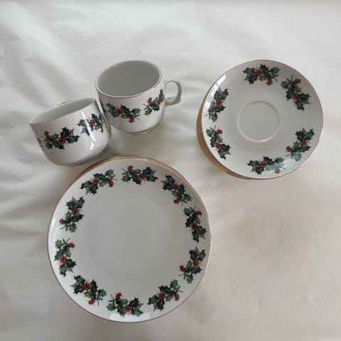 Juleservice 8 stk store fat og 8 stk suppetallerken. Hentes Skatval, sendes ikke.
