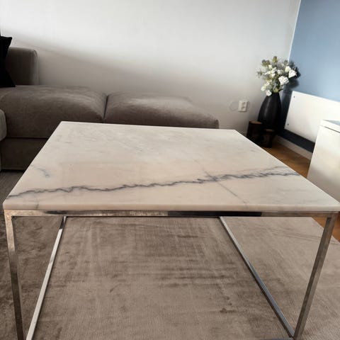 Nesten nye sofabord ROLSTED fra jysk selges billig! Kun brukt i noen måneder på et showroom. Ser ut som ekte marmor.
