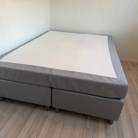 Følger med 8 stk bein. Overmadrass kastet.