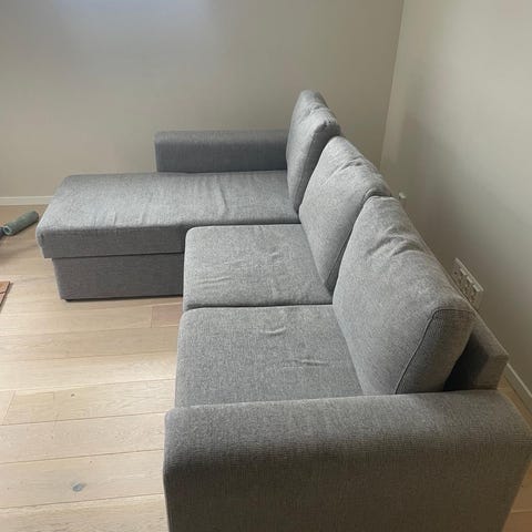 Pent brukt grå sofa selges på grunn av flytting. Sofaen er i veldig god stand, uten flekker, og har vært godt vedlikeholdt. Komfortabel å sitte i og passer fint inn i de fleste hjem.