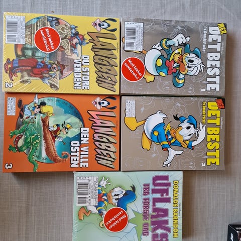 Reservert. Gies bort mot henting .Donald Pocket tegneserieblader i blandet samling. Inneholder flere hefter med ulike nummer og forsider med motiv av Donald Duck og andre figurer fra Andeby. Heftene er i lommebokformat med myke permer. Egner seg for lesing og som tillegg til eksisterende samling av Donald Pocket-tegneserier.