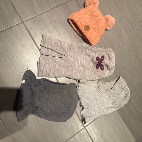 Selger en utrolig søt mini klespakke til jente. Dette stilige settet består av en myk leopardmønstret hettejakke med dekorative ører på hetten, en matchende leopardbukse, utrolig søte tøfler med fuskepelsdetaljer og svarte strømpebukser med søte dekorative sløyfer. Klærne har et trendy dyreprint i nøytrale farger som passer til alt, og tøflene sørger for at den lille holder seg varm på føttene. Hele settet fremstår som pent brukt og er laget i et behagelig stoff som gir god bevegelighet for en liten krabat i utvikling.