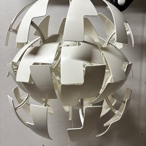 Taklampe som kan åpnes og lukkes. Sølvfarge inni.