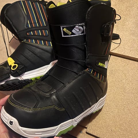 K2 Data snowboardstøvler for herre i størrelse EU 42 (US 9 / UK 8 / 27 cm). Modellen har tradisjonell snøring og er merket som herremodell. Farge hovedsakelig svart med kontrastfarget innside. Støvlene er egnet til bruk med snowboardbindinger som passer til denne typen myke snowboardstøvler. Nypris ca 1000,-