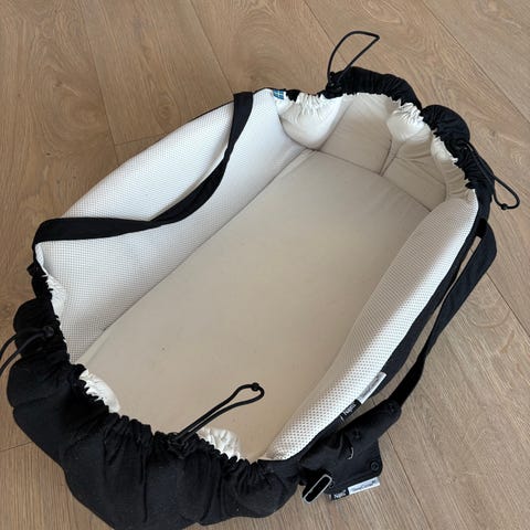 Najell SleepCarrier FX babynest i beige farge. Babynestet fungerer som en bærebag og soveplass for spedbarn. Det har polstrede sidekanter, bærehåndtak og justerbare snorer i endene som gjør at størrelsen kan tilpasses. Innvendig liggeflate er mykt polstret for komfort. Egnet til bruk hjemme, i barnevogn eller på reise som trygg liggeplass for baby.