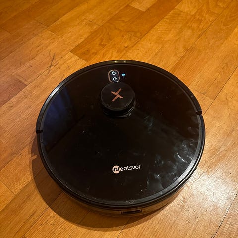 Så godt som ny (kjøpt i høst) Neatsvor X500 robotstøvsuger i hvit.