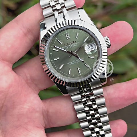 Dette er en håndmontert klokkemod og er ikke produsert, godkjent eller tilknyttet Seiko eller andre merkevareeiere. Seiko-navnet brukes kun for å beskrive urverket som er benyttet. Ønsker du en custom klokke tilpasset dine ønsker, kan jeg lage dette på bestilling. Send meg gjerne en melding her på Finn eller via nettsiden veromods.com.