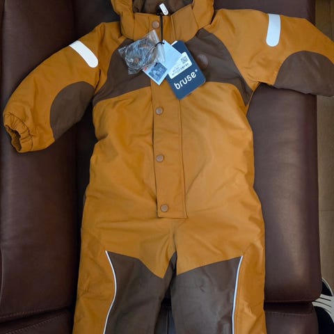 Denne vinterdressen fra Bruse er i god stand! Den ble bare brukt i seks måneder i barnehagen, og da mest til koselige stunder i sandkassen. Den er utrolig lett å kle på små barn, og varm og god. I tillegg følger det med strikk til under føttene som er helt ubrukte.
