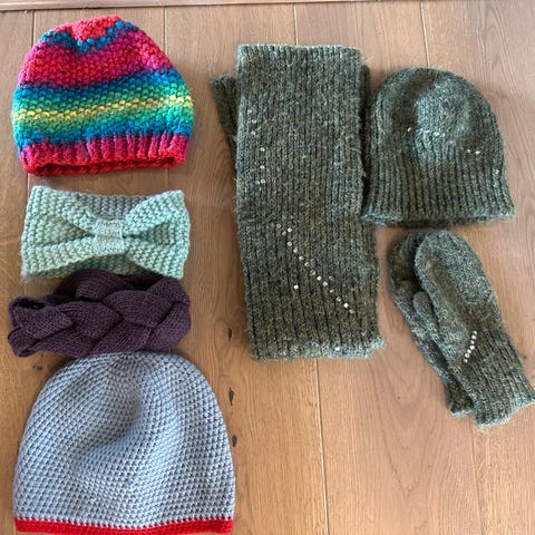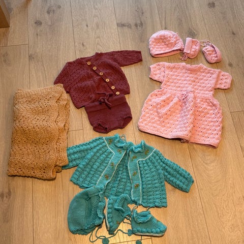 Har en stor bag med forskjellig strikking som min mor har strikket.