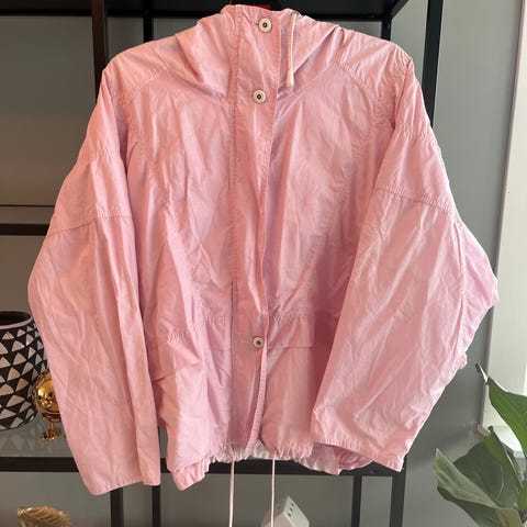 Jakken er laget i 100 % nylon med fôr i polyester. Modellen har hette, glidelås og trykknapper i front, samt glidelåslommer i sidene. Ytterjakken passer som lett yttertøy til hverdagsbruk og tur i overgangssesonger. Vaskes på 30 °C uten tøymykner, ifølge vaskeanvisningen.