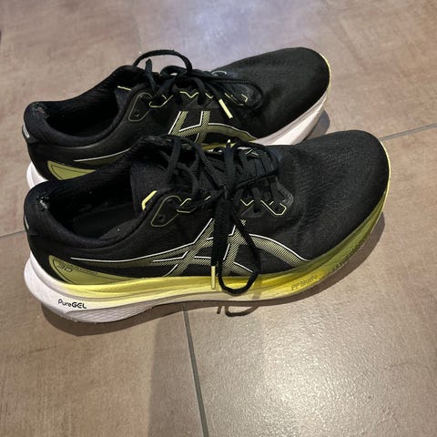Asics løpesko i størrelse 44. Skoene er helsvarte med overdel i pustende mesh-materiale og gummisåle med mønster for grep. Egnet til løping og annen trening på hardt underlag. Nøytral modell som passer til både kvinner og menn, avhengig av fotform og størrelse.