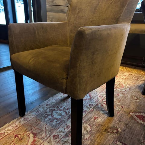 4 st Røffe skinnstoler i brun farge.Gode å sitte i.