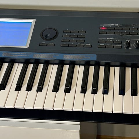 Denne arbeidshesten har vært med meg i snart 7 år og gjort over 500 show. Jeg har kjøpt nye Korg Kronos 3 og denne skal pensjoneres. Etter at jeg oppdaterte til siste firmware fikk jeg en feilmelding. Og den vil ikke boote opp. Er man litt Dr.. Synth, skal det være mulig å få denne på bena igjen etter å ha sett på noen YouTube-videoer. Men siden jeg har kjøpt ny Kronos selges denne som den står.
