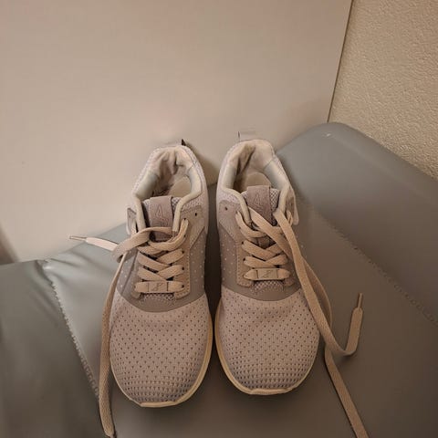 Grete Waitz sneakers joggesko i størrelse 39. Skoene er i en lys grå farge med overdel i pustende tekstilmateriale og snøring foran. Yttersåle i gummi med mønster for grep. Det følger med uttakbar trykkavlastende innersåle. Egner seg til hverdagsbruk og lett aktivitet.
