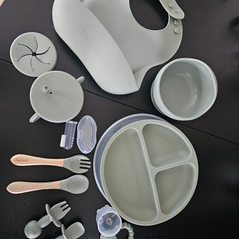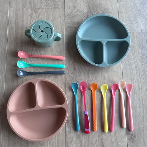 Siklesmekker baby 10 stk. Diverse i blå, grå, sorte toner.. Noen godt brukt, andre fremstår som nye. 3 stk fra Pippi med tekst i tykkere stoff, 5 stk tynne fra HM m/ 2 sorte, 2 grå, en blå. En lyseblå liten og en med frosk og striper.