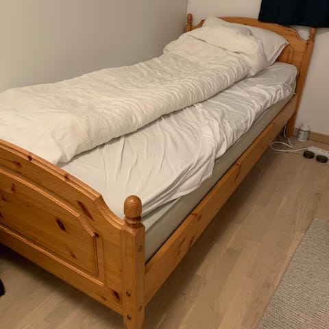 1 stk Svane seng 90x200 gis bort hentes på strømmen