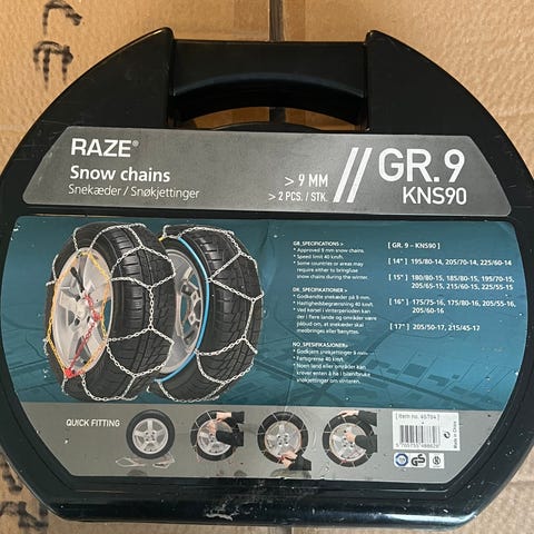Snowdriver 070 snøkjetting nett-type for personbil. Leveres i plastkoffert. Passer til flere dimensjoner personbildekk (blant annet 185/13, 195/70-14, 205/55-15 og tilsvarende størrelser som angitt på esken). Kjettingen har nettmønster rundt dekket for økt grep på snø og is. Godkjent etter TÜV-standard ifølge merking på emballasjen.