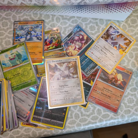 153 vanelig pokemon holo kort selges samlet. Kortene er i fra forskjelige serier. Frakt er ikke inkludert i prisen.