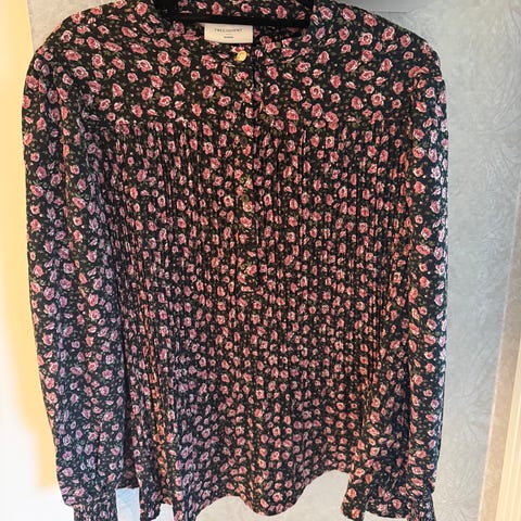 Nydelig bluse fra Freequent med sort bunn og rosemønster. Sort i bunn. Fremstår som helt ny i stoffet. Utrolig fin passform og litt puffermer. Størrelse M og normal i størrelse🤍🖤 Myk og god i stoffet.