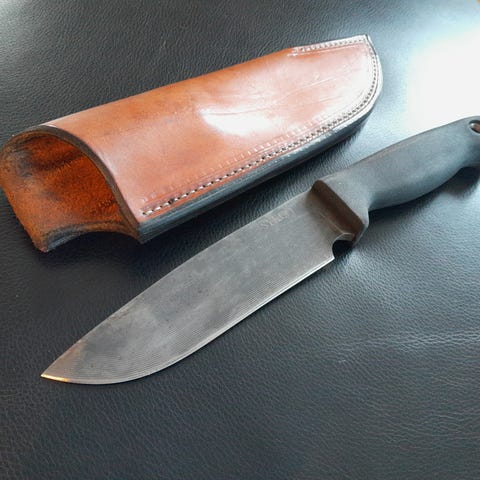 Kniven har noe slitasje/merker på bladet, men er fullt funksjonell. Godt grep og solid konstruksjon.