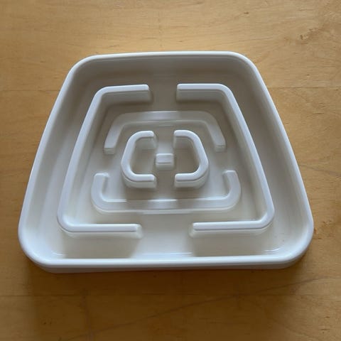 Magisso matskål i hvit keramikk. Skålen har forhøyning i midten og fasettert mønster på utsiden. Egnet som matskål til kjæledyr. Laget i keramikk med matt underside og glasert innside for enkel rengjøring.