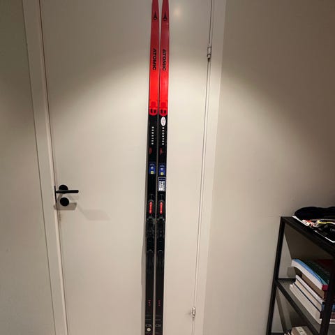 Det er satt på ny racing fell. Det er montert nye Rottefella-bindinger. Disse er lette å justere etter skostørrelse.