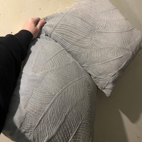 3 like 150cm x 240 cm grå sengeteppe for enkel seng. Selges 100 kr / stk.
