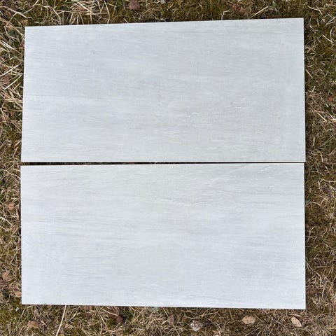 Selger tre stk fliser som har blitt brukt for utstilling på marked. Er litt chippet på sidene, to steder, men ellers ok stand. De har fine farger på seg, hvit og grå nyanser. Selges fordi de blir for tunge å frakte når jeg står på marked.