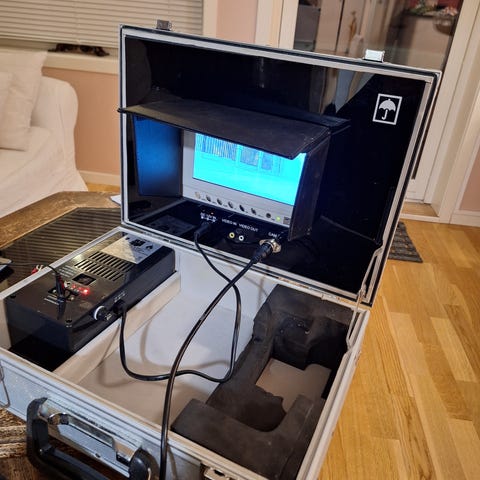 Enheten bærer preg av å være solid bygget. Den har noen bruksmerker på utsiden av kofferten, men selve laseren ser velholdt ut. Selges som den er (se bilder for detaljer om serienummer og produksjonsdato).