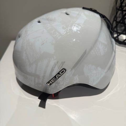 Cébé alpinhjelm i hvit farge. Hjelmen har ventilasjonsåpninger på toppen og justerbar hakereim med klikkspenne. Innvendig er det myk polstring og øreputer for bedre komfort. Egnet til bruk i alpint og andre vintersporter der det er behov for hodebeskyttelse.