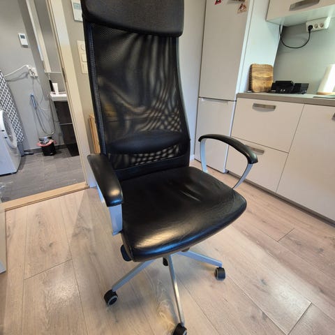 Selger grunnet kjøp av ny stol som passer meg bedre. Kjøpt rundt 2015, har ingen mekaniske feil, men noen kosmetiske. Slitasje på kunstlæret kan sees på bildet.