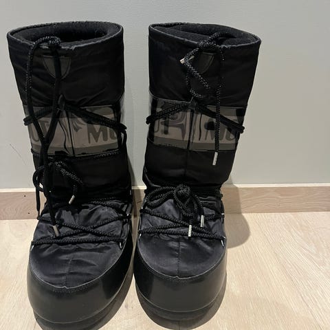 Moon Boot The Original vinterstøvler i størrelse 38. Modellen er i svart farge med snøring foran og rundt foten.