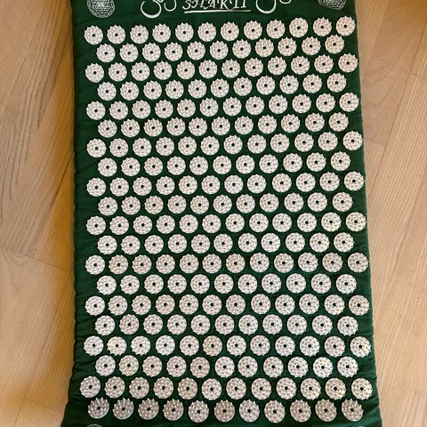 Selger refleksologimatte, perfekt for avslapning og stimulering av fotens reflekspunkter. Matten har markerte soner som tilsvarer indre organer (hjerne, øyne, skjoldbruskkjertel, lunger, mage, lever, hjerte, nyrer osv.), og de fargerike steinene gir en behagelig og effektiv massasje.