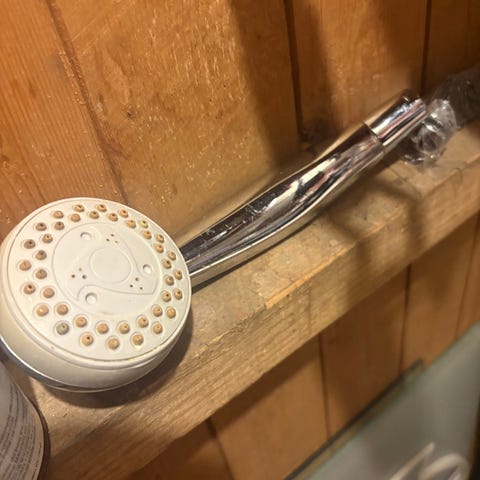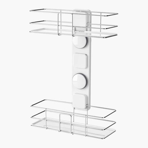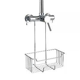 Hjørnehylle for baderom i metall med sugekopper for montering på flis eller annen glatt overflate. Hyllen er utformet for plassering i hjørne over servant eller i dusj, og gir oppbevaringsplass til for eksempel såpe eller andre baderomsartikler. Åpen trådkonstruksjon gjør at vann renner lett av. Egnet for innendørs bruk på bad.