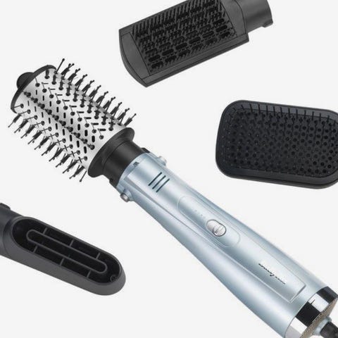 5 i 1 stylingsett (føner, varmluftsbørste, slettebørste og krølltang (høyre og venstre). Har kun brukt føneren en gang - resten er ubrukt. Kjøpt rett før jul, men fikk en annen føner til jul, så dette blir ikke brukt. Har dessverre kastet esken. Svart oppbevaringsveske i to etasjer med plass til alle delene (også plass til børste, varmebeskyttende spray osv), følger med.