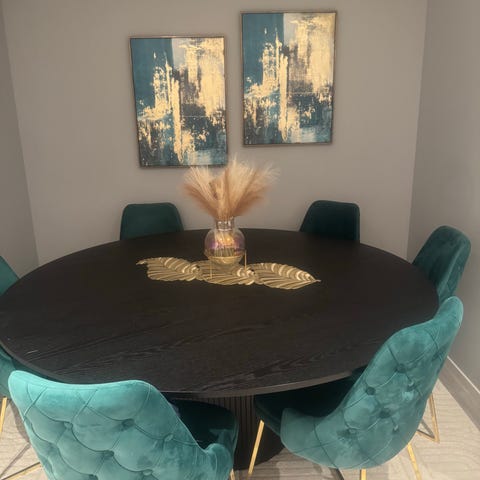 Selger ett rundt spisebord fra Skeidar i fargen røykfarget eik finer. Bordet har en diameter på 120 cm med svart metallben. Kjøpt nytt på Skeidar i desember 2024. Nypris 7999kr. Noen bruksmerker på bordet (se bilde).