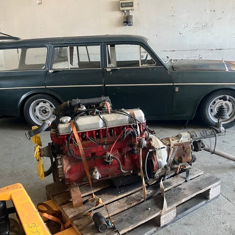 Volvo B234F 16 v motor lagret inne noen år sitter konverter på den nå . Tar ut fra vei bil tidligere politi motor i følge tidligere eier vurderes solgt grunnet andre planer
