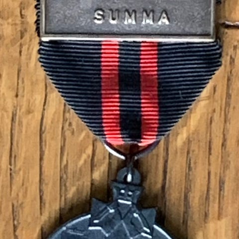 Finsk militær medalje med TOLVAJÄRVI Spange og Sverd.