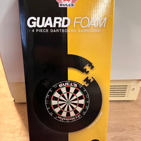 PDC dartskivebeskytter i rød farge. 4 delt beskyttelseselement som monteres rundt dartskiven for å skjerme veggen mot feilkastede piler. Har utskjæringer for feste rundt skiven og PDC-logo på fronten. Egnet til bruk hjemme eller i klubbmiljø der man ønsker å redusere merker på vegg rundt dartskiven.