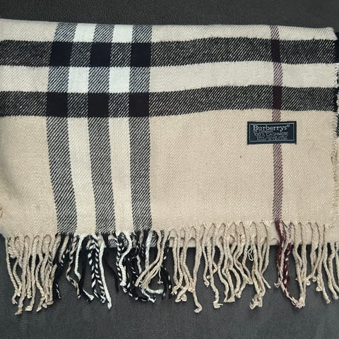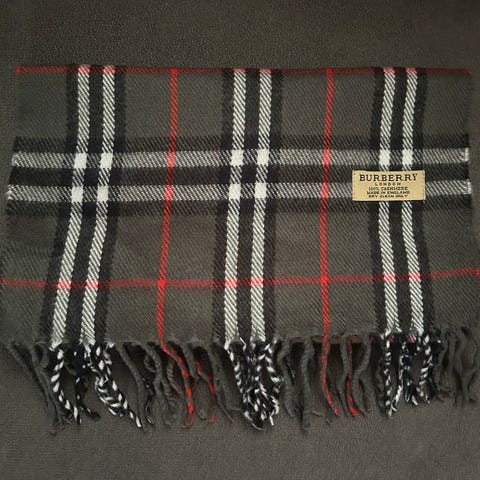 Autentisk Burberry-skjerf laget av 100 % cashmere med klassisk rutemønster.