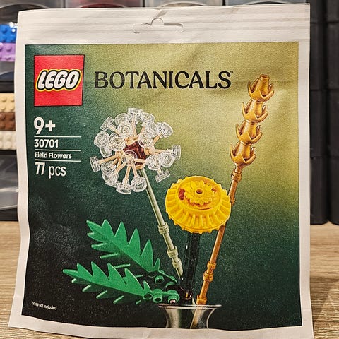 LEGO Botanicals 30701 Engblomster / Field Flowers består av 77 deler og er fabrikkforseglet i miljøvennlig papirpose.