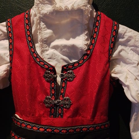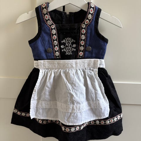Selger festdrakt til jente str 98. kjøpt på barnas hus. Selger med forkle om ønskelig, selges uten skjorte