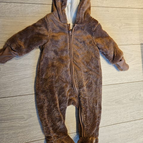 Lindex ull sparkedress i brun farge, størrelse 56, unisex. Plagget er laget i ull og har lange ermer og ben. Sparkedressen har åpning foran med knapper for enkel av- og påkledning. Egnet som innerlag eller kosedress for baby i størrelse 62.