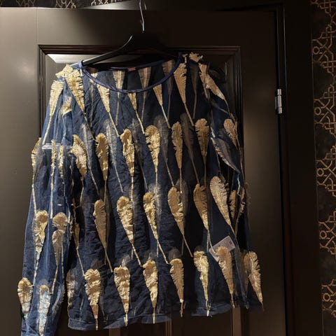 Tykk strikkejakke fra Segal i størrelse S i 50% lammeull, 28% silke, 15% nylon og 7% angora. Kneppes helt opp i halsen med liten krage. To små utenpå lommer. Litt stor i størrelsen