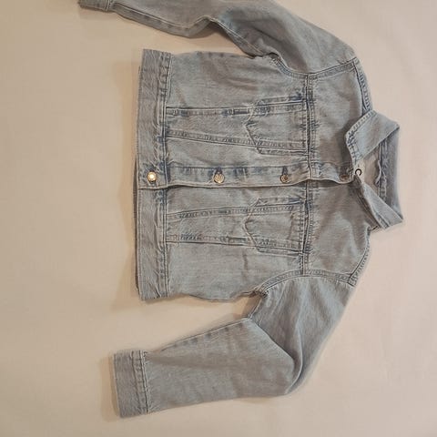 Denim olajakke for barn i størrelse 104. Jakken er i blå denim og har unisex passform. Klassisk modell med knapper foran og lommer. Egnet til hverdagsbruk og som ytterplagg i mildt vær.