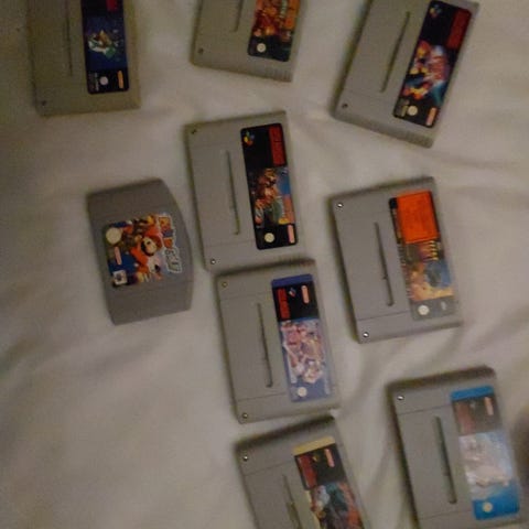 Selger en samling eldre Nintendo‑spill. Alt selges som brukt, og mye har slitasje på klistremerkene – perfekt for deg som vil spille, ikke nødvendigvis samle.