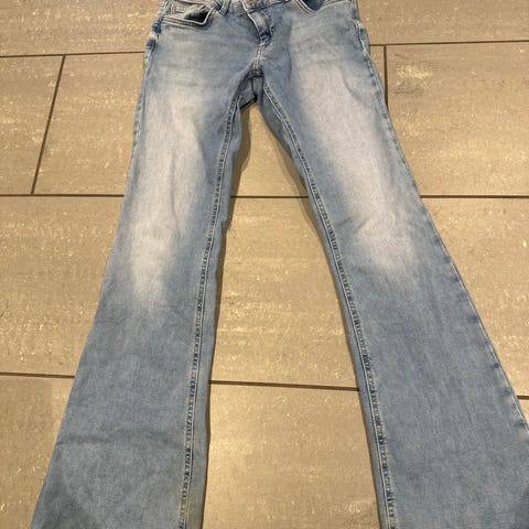 Materiale i denim (bomullsblanding) med lett vasket effekt. Passer til hverdagsbruk og kan kombineres med ulike topper og sko.